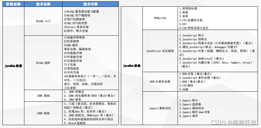 <ul type="circle"><li>Java编程语言</li><li>Mysql数据库</li><li>Jsp网络编程</li>