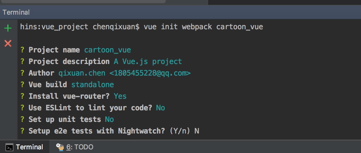 - Setup unit tests with Karma + Mocha?:是否安装测试(单元测试);