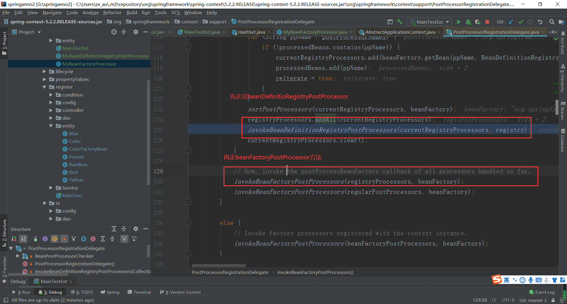 在上面的代码基础上加一个MyBeanDefinitionRegistryPostProcessor的组件实现BeanDefinitionRegistryPostProcessor 接口