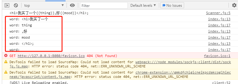 上面代码是创建一个模板字符串Str,把Str放到TemplateEngine.render()函数转换成tokens,然后查看浏览器console输出。