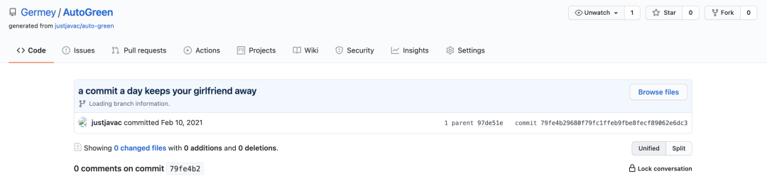 点进去看看,commit 的信息还叫 "a commit a day keeps your girlfriend away",啥意思?