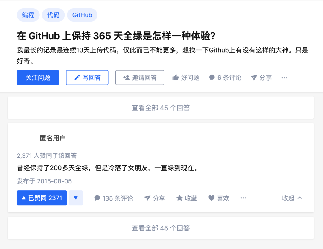 ”写这篇文章的缘由来自看到了知乎上的一个问题——在 GitHub 上保持 365 天全绿是一种怎样的体验?
