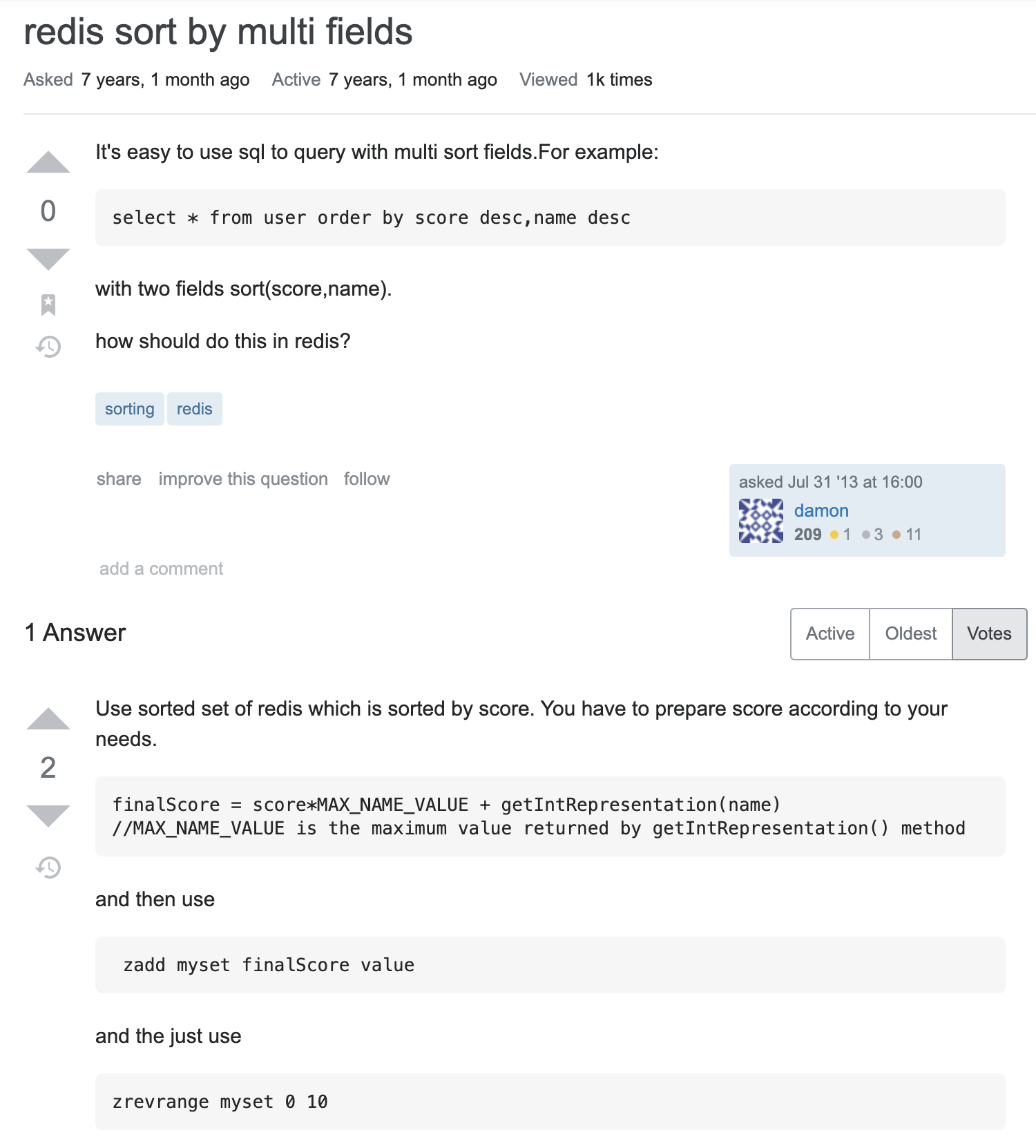 3、问题:用两个字段(score,name)排序。在redis中应该怎么做?