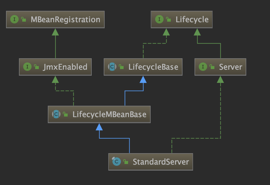 Server默认的实现是StandardServer,StandardServer又继承自LifecycleMBeanBase