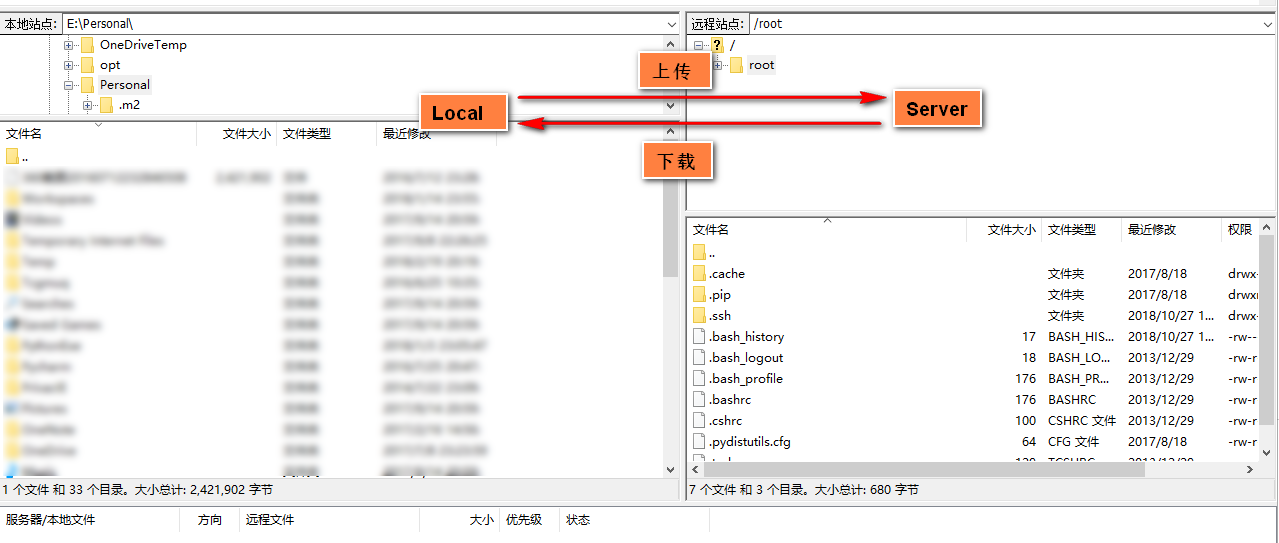 (3)使用工具与服务器连接,完成上传和下载的任务